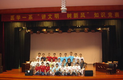 为了让全体师生以积极的姿态、饱满的热情扎实做好评估前的各项准备工作,展现医学一系广大学生的良好精神风貌。5月23日晚,医学一系在校大学生活动中心举办了“讲文明、树新风”知识竞答活动。比赛分为必答、集体答及抢答三个环节。医学一系2005级、2006级、2007级三支代表队在台上进行了激烈的角逐与比拼,各代表队的方阵队更是不甘示弱,欢呼声、掌声与助威声融合在一起,现场气氛活跃,选手们的表现牵动着在场每一个人的心。最终,通过加时赛,2007级摘得本次比赛冠军,亚军由2005级获得,2006级代表队荣获最佳组织奖。