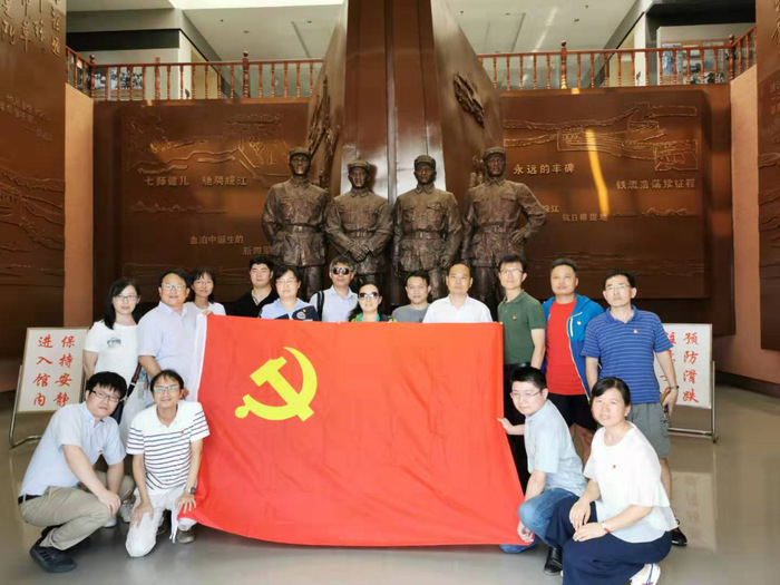2日上午开幕式结束后,七个党支部的与会代表乘车参观了位于芜湖市繁昌县荻港镇的板子矶红色教育基地。在板子矶渡江战役军事展馆内,大家参观馆内史料,了解当年百万雄师过长江第一船登陆的英勇经过和渡江英雄们的革命事迹,感受了那一段炮火中热血与信念并存的红色记忆。在纪念碑前,全体党员面对鲜艳的党旗重温入党誓词,提醒自己不忘为人类的健康谋幸福的初心,勇挑卫生事业管理学科建设的重担,为学科发展贡献自己的力量。