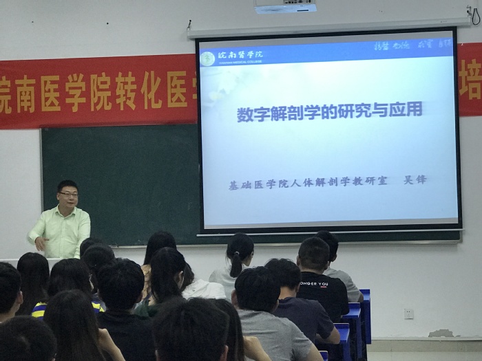 2019年5月15日下午,医学影像学院邀请基础医学院人体解剖学教研室吴锋副教授作题为“数字解剖学的研究与应用”的学术讲座。讲座由医学影像学院党委副书记、副院长许国飞主持,来自医学影像学院和基础医学院的师生共70余人参加了此次学术活动。