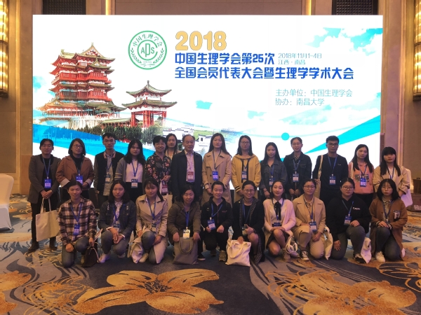 由中国生理学会主办、南昌大学承办的“中国生理学会第25届全国会员代表大会暨生理学学术大会”于2018年11月1-4日在江西南昌召开,我校人文与管理学院生理学与神经生物学教研室组织的生理学团队一行24人,除了8名教师和3名研究生外,还有来自应用心理学、麻醉学、医学影像学、临床医学、口腔医学、法医学、医学检验技术、护理学等专业的“启明星小组”成员13人,在团队带头人汪萌芽教授的带领下出席了大会。